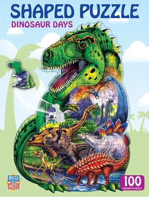 - Shaped puzzle features ancient dinosaurs roaming the land