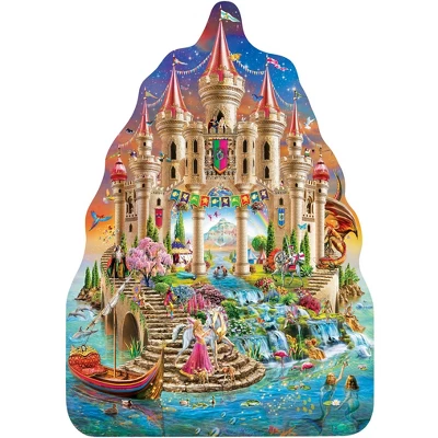 - This Fairytale Kingdom Shaped puzzle features royalty, a dragon, a unicorn, and more, enjoying their kingdom