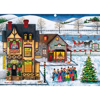 These MasterPieces 19.25″ x 26.75″ 1000pc of Main Street Carolers features the essence of true holiday spirit with a town filled with holiday decor and a group of carolers to sing and spread good holiday cheer. Holiday Puzzles are the perfect way to get into the holiday spirit, and the perfect holiday presents for friends and family. Cozy up around the table for some holiday family fun! To reduce their impact on our environment, the chipboard used in these puzzles is made of recycled material.