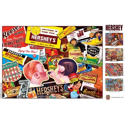 This MasterPieces MasterPieces 19.25″ x 26.75″ 1000pc Hershey’s Puzzle is full of indulgingly sweet images of a variety of Hershey’s chocolates, and are made with the chocolate lover in mind. Have a kiss and enjoy the sweet taste of a classic. Hershey’s chocolates have been bringing delicious chocolates, sweet Reeses and sugary Kisses as America’s oldest candy company. These puzzles are the perfect gift for any sweet-toothed friend or family member. To reduce its impact on our environment, the chipboard used in this puzzle is made of recycled material.