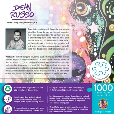 This MasterPieces 19.25″ x 26.75″ Dean Russo 1000 Piece Puzzle is the perfect blend of exciting and adorable. When you look into the eyes of a dog who has found his forever home, you find true love. This pup is the very picture of canine adoration. Or maybe he just wants treats! Either way, this rainbow-hued mutt is sure to steal your heart. The EZ-Grip technology used to make this puzzle offers larger puzzle pieces that snap together perfectly, without compromising image quality. To reduce its impact on our environment, the chipboard used in this puzzle is made of recycled material.
