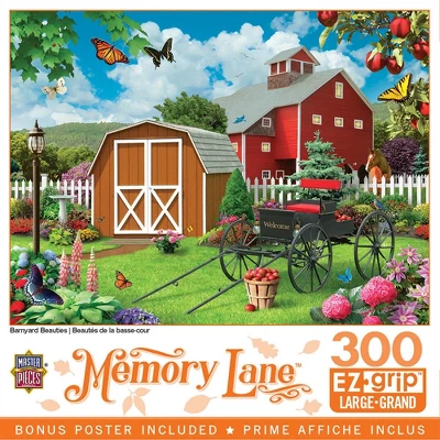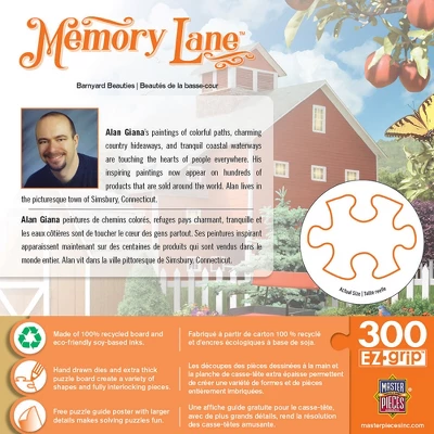 This MasterPieces 18″ x 24″ Memory Lane 300PC EZ Grip Puzzle. A quaint wagon sits outside the barn as it’s majestic steed looks on. Bright and colorful summer days are ahead. It was painted by the talented Alan Giana, whose paintings of colorful paths, charming country hideaways, and tranquil coastal gateways are touching the hearts of people everywhere. His inspiring paintings now appear on hundreds of products that are sold around the world. Alan lives with his loving wife, Pamela, in the picturesque town of Simsbury, Connecticut. The EZ-Grip technology used to make this puzzle offers larger puzzle pieces that snap together perfectly, without compromising image quality. To reduce its impact on our environment, the chipboard used in this puzzle is made of recycled material.
