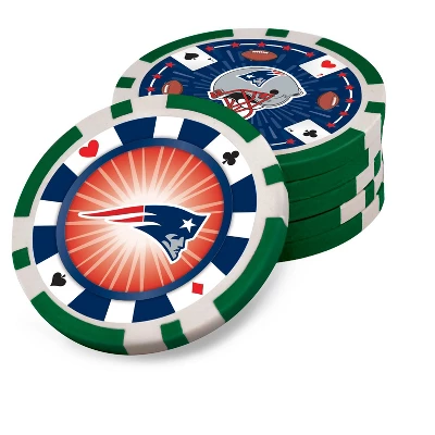 - High Quality, Heavy Weight 11.5-Gram Casino-Style Poker Chips featuring New England Patriots designs