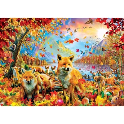 These MasterPieces 15″ x 21″ 500pc Hidden Image Glow-in-the-Dark Puzzles feature various ocean and wildlife scenes, each with special, hidden animals or objects, some of which glow-in-the-dark, and others who hide in plain sight.A family of foxes have gathered with furry and feathered friends alike in this fun fall-themed puzzle. The crisp autumn breeze blows red, orange, and yellow leaves across the placid lake. In the distance a rainbow kisses the foothills of the mountains, completing this idyllic scene. Find all the secrets in these wildly entertaining puzzles! To reduce their impact on our environment, the chipboard used in these puzzles is made of recycled material.