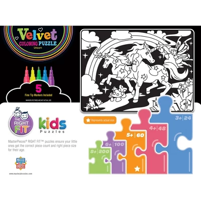 - Comes with 5 fine tip markers in pink, yellow, green, blue, and purple to color your puzzle