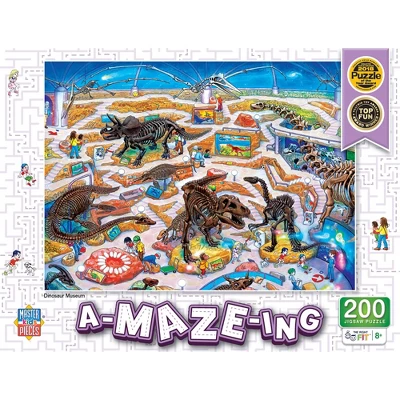 This A-Maze-ing puzzle full of Dinosaurs is the perfect challenge for older kids. Find you way through this maze after completing a colorful puzzle featuring a Dinosaur museum filled with history and science. This puzzle is both colorful to build and challenging to solve. This puzzle is 200 pieces and 19 inches x 14 inches in size. Look for The Right Fit® puzzles collection and make sure your little one gets the correct piece count and size for a good challenge for their age. This puzzle is the right fit for ages 8+.