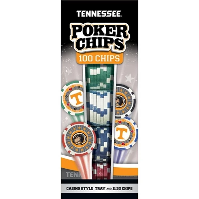 - 100 Casino Style University of Tennessee Poker Chips and Tray