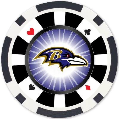 - 100 Casino Style Baltimore Ravens Poker Chips and Tray
