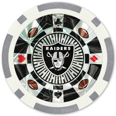 - Metallic Silver-Colored Poker Chips Featuring Raiders Design
