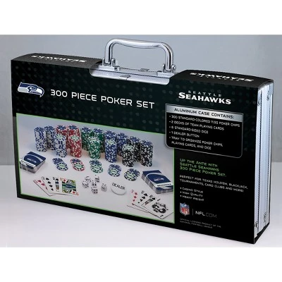 Looking for a great way to support your favorite team on poker night? Well, ante up with MasterPieces officially licensed NFL Seattle Seahawks 300 Piece Casino Style Poker Chips! These heavy 11.5-gram chips are perfect for Texas Hold’EM, Blackjack, card games, and much more. The poker set includes 300 high-quality standard-colored poker chips (11.5g) featuring two unique team designs. 60 White Chips, 60 Red Chips, 60 Blue Chips, 60 Green Chips, and 60 Black Chips. 6 standard-size (16mm) dice featuring your team’s logo and colors on each die, 2 decks of playing cards with card-back designs featuring your favorite team’s logo. All face cards and jokers have detailed custom team designs. 1 dealer button. Plus, an easy-to-carry sturdy aluminum case has a black velour interior to protect and organize poker chips, playing cards, and dice.
