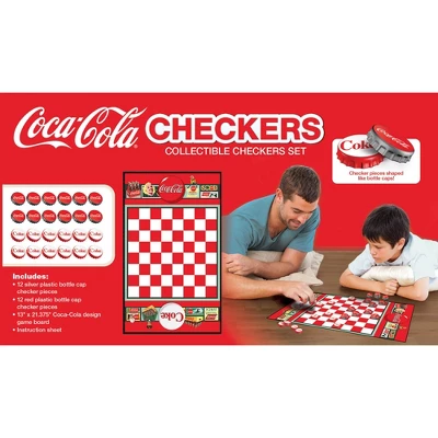 Looking for a fun game to play with your family? Check out this Coca-Cola Checkers Board Game! The classic game of checkers is now themed with bottles of Coca-Cola! The game includes 24 plastic red and silver bottle cap checkers pieces, a 13″ x 21.375″ Coca-Cola vintage art game board, and instructions. The game is for 2 players, ages 6+. Enjoy a game of checkers featuring the classic artwork of Coca-Cola. Perfect for family game nights and great for collectors, this Checkers board game is bound to be fun for everyone! Get yours today!