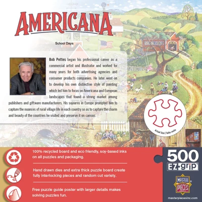 - 500 PIECE PUZZLE: Hours of entertainment! Puzzle pieces are secured inside a bag and packaged in a full-color box with puzzle image for solving.