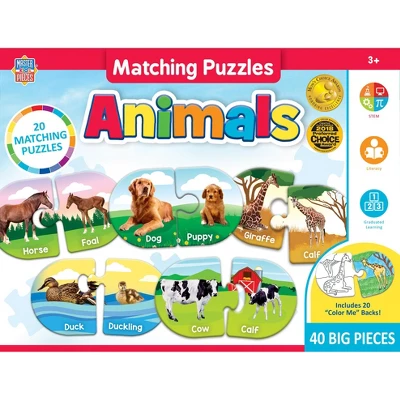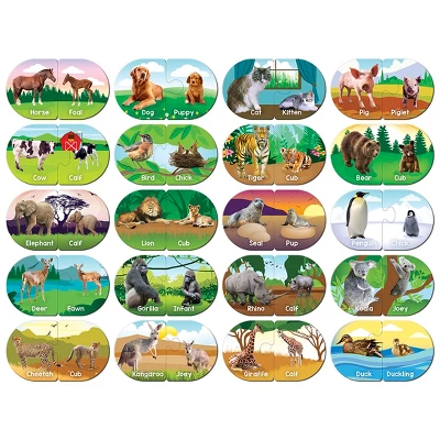 - Animal Matching pairs the young animal on one piece with its parent animal on the other piece