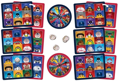 Play bingo with the famous Mascots of MLB! This game features 18 MLB Mascots featuring S. Preston Minimalist Mascot art. Make all 9 matches and be the first to shout BINGO! This MasterPieces bingo game includes 1 spinner, 6 game boards, and 84 tokens.