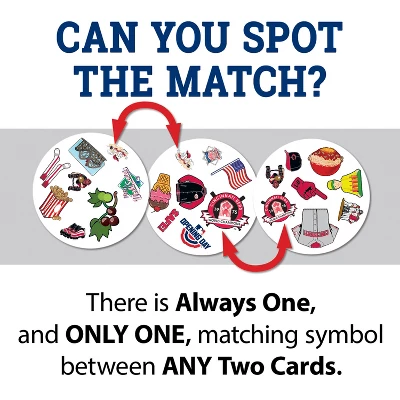 Spot It! Officially licensed MLB Cincinnati Reds Edition puts an exciting spin on the family favorite. Just like the other Spot It! games, this Cincinnati Reds Edition comes with a variety of unique symbols for you to identify and match from card to card. Many of the symbols represent the Cincinnati Reds and the league. Play it once or play all night, with 55 unique cards and five different mini-games, you’ll catch yourself going into extra innings with Spot It! Cincinnati Reds Edition. Games take approximately 5 to 10 min to complete and is perfect for children and adults ages 7 and up.