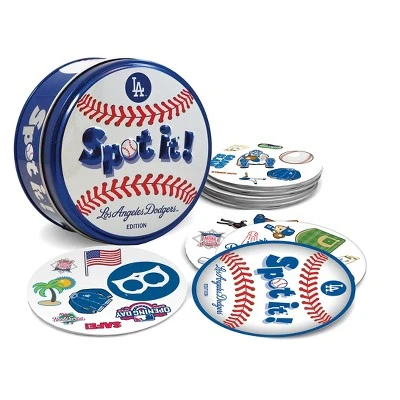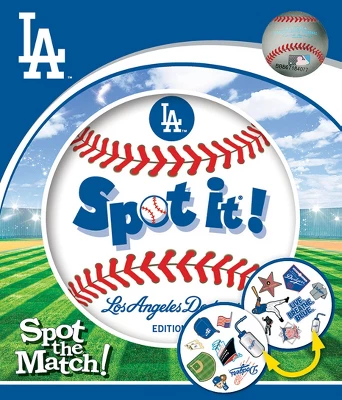 Spot It! Officially licensed MLB Los Angeles Dodgers Edition puts an exciting spin on the family favorite. Just like the other Spot It! games, this Los Angeles Dodgers Edition comes with a variety of unique symbols for you to identify and match from card to card. Many of the symbols represent the Los Angeles Dodgers and the league. Play it once or play all night, with 55 unique cards and five different mini-games, you’ll catch yourself going into extra innings with Spot It! Los Angeles Dodgers Edition. Games take approximately 5 to 10 min to complete and is perfect for children and adults ages 7 and up.