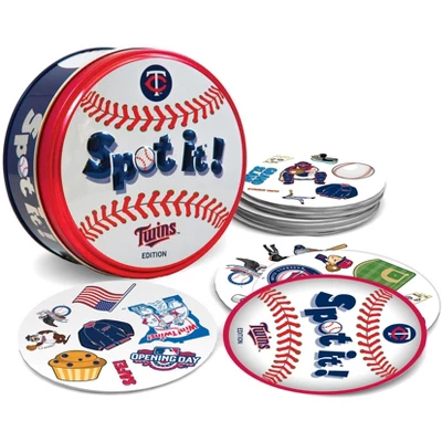 Spot It! Officially licensed MLB Minnesota Twins Edition puts an exciting spin on the family favorite. Just like the other Spot It! games, this Minnesota Twins Edition comes with a variety of unique symbols for you to identify and match from card to card. Many of the symbols represent the Minnesota Twins and the league. Play it once or play all night, with 55 unique cards and five different mini-games, you’ll catch yourself going into extra innings with Spot It! Minnesota Twins Edition. Games take approximately 5 to 10 min to complete and is perfect for children and adults ages 7 and up.