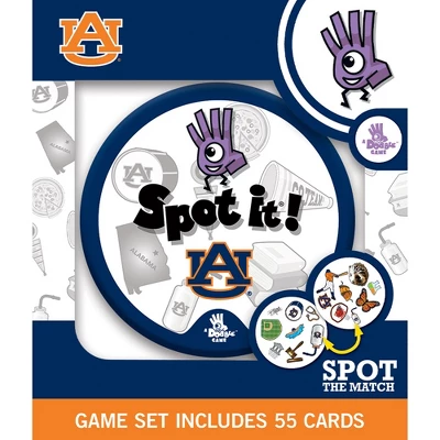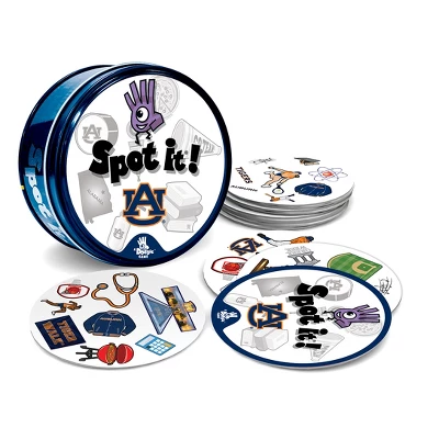 Spot It! Officially licensed NCAA Auburn Tigers Edition puts an exciting spin on the family favorite. Just like the other Spot It! games, this Auburn Tigers Edition comes with a variety of unique symbols for you to identify and match from card to card. Many of the symbols represent the Auburn Tigers and the league. Play it once or play all night, with 55 unique cards and five different mini-games, you’ll catch yourself going into extra innings with Spot It! Auburn Tigers Edition. Games take approximately 5 to 10 min to complete and is perfect for children and adults ages 7 and up.
