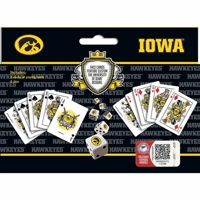 Who says you can’t bring the casino to your next game night? These Officially Licensed NCAA Iowa Hawkeyes 2-pack playing card and dice sets are perfect for any game night. The high-quality Casino Style Cardstock playing cards are perfect for any fan of the Iowa Hawkeyes. The deck features a unique team design and comes with a 6-piece 16mm D6 gaming dice set. Whether you’re playing some poker or trying to beat the dealer at blackjack, these cards will help you do it in style. So roll the dice and get ready to bet big, because, with this set, you’re going to win big. Go Team!