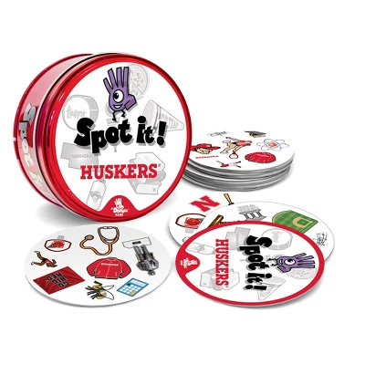 Spot It! Officially licensed NCAA Nebraska Cornhuskers Edition puts an exciting spin on the family favorite. Just like the other Spot It! games, this Nebraska Cornhuskers Edition comes with a variety of unique symbols for you to identify and match from card to card. Many of the symbols represent the Nebraska Cornhuskers and the league. Play it once or play all night, with 55 unique cards and five different mini-games, you’ll catch yourself going into extra innings with Spot It! Nebraska Cornhuskers Edition. Games take approximately 5 to 10 min to complete and is perfect for children and adults ages 7 and up.