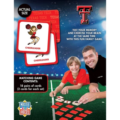 Looking for a fun way to spend some time with the family? Look no further than the NCAA Texas Tech Red Raiders Matching Game. This exciting game puts a sports spin on the classic matching game, and is perfect for children, adults, and families of all ages. With 18 unique pairs of symbols, it’s sure to keep you entertained for hours on end. Plus, the officially licensed NCAA picture cards are made with high-quality stock for durability and lasting enjoyment. So grab a partner and get ready to test your memory and sports knowledge with the NCAA Texas Tech Red Raiders Matching Game!