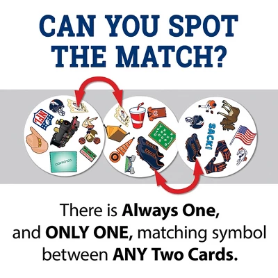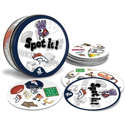 Spot It! Officially licensed NFL Denver Broncos Edition puts an exciting spin on the family favorite. Just like the other Spot It! games, this Denver Broncos Edition comes with a variety of unique symbols for you to identify and match from card to card. Many of the symbols represent the Denver Broncos and the league. Play it once or play all night, with 55 unique cards and five different mini-games, you’ll catch yourself going into extra innings with Spot It! Denver Broncos Edition. Games take approximately 5 to 10 min to complete and is perfect for children and adults ages 7 and up.