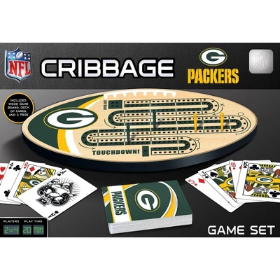 Looking for something fun and challenging to do while cheering on your Green Bay Packers? Look no further than this MasterPieces officially licensed NFL Green Bay Packers Cribbage Game Set for adults and families! This set includes a durable wood-finished cribbage game board, shaped like a football, with authentic Green Bay Packers logos. Peg your way around the board with Yardage Marker Pegs, and make runs with hand-drawn Kings, Queens, and Jacks dressed in team gear. This Cribbage Game Set is perfect for the ultimate fan of the Green Bay Packers and Cribbage.