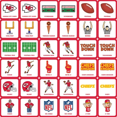 - Contains 18 matching pairs of unique symbols from the Kansas City Chiefs.