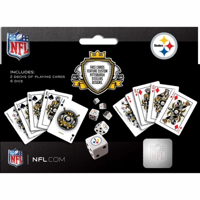 Who says you can’t bring the casino to your next game night? These Officially Licensed NFL Pittsburgh Steelers 2-pack playing card and dice sets are perfect for any game night. The high-quality Casino Style Cardstock playing cards are perfect for any fan of the Pittsburgh Steelers. The deck features a unique team design and comes with a 6-piece 16mm D6 gaming dice set. Whether you’re playing some poker or trying to beat the dealer at blackjack, these cards will help you do it in style. So roll the dice and get ready to bet big, because, with this set, you’re going to win big. Go Team!