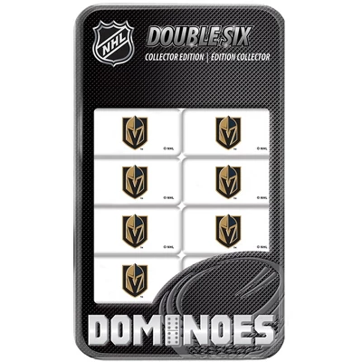 Officially licensed, MasterPieces NHL Las Vegas Golden Knights dominoes are perfect for any sports fan! This Double-Sixes Las Vegas Golden Knights Dominoes Set comes in a collectible tin box and includes 28 resin dominoes with a team logo printed on the back of each one. Dominoes Instructions are also included. This Sports Dominoes Set is perfect for all sports fans, ages 6 and up! Bring a little bit of pride home with you by purchasing this unique Dominoes Set!