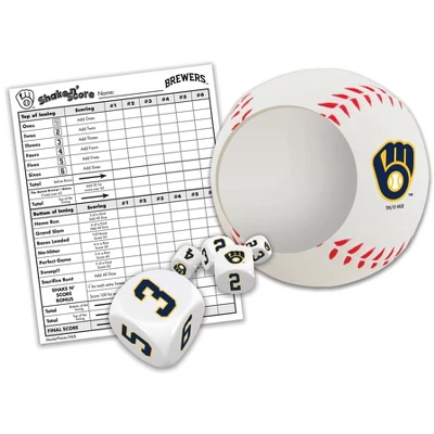 - Game includes Milwaukee Brewers Baseball Dice Cup, 5 Dice & Custom Score Pad