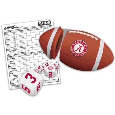 Introducing the Officially Licensed NCAA Alabama Crimson Tide Shake N’ Score Dice Game! This MasterPieces Alabama Crimson Tide Shake n’ Score Dice Game is a collectible travel game for Alabama Crimson Tide fans everywhere! It is perfect for tailgating or having fun at home with the family! Try to get as many points as possible by rolling different combinations of all five dice! The Shake n’ Score Dice Game includes a team dice cup, 5 team dice, and an Alabama Crimson Tide score pad! Two or more fans, ages 6+, can play this travel dice game!