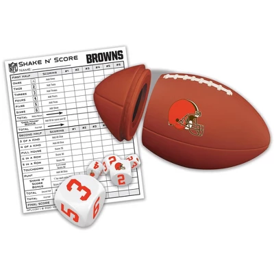 Introducing the Officially Licensed NFL Cleveland Browns Shake N’ Score Dice Game! This MasterPieces Cleveland Browns Shake n’ Score Dice Game is a collectible travel game for Cleveland Browns fans everywhere! It is perfect for tailgating or having fun at home with the family! Try to get as many points as possible by rolling different combinations of all five dice! The Shake n’ Score Dice Game includes a team dice cup, 5 team dice, and an Cleveland Browns score pad! Two or more fans, ages 6+, can play this travel dice game!