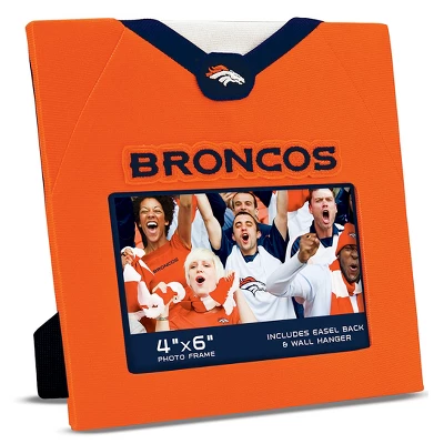 Support your favorite NFL Team with officially licensed and approved frames. Frame holds a 4″ x 6″ picture and includes easel and wall hanger. Perfect for game day photos and Denver Broncos Fans!